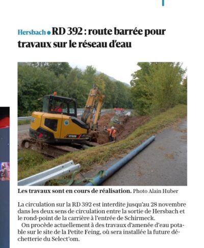 Un point sur les travaux de voirie dans la rue de la Gosse à Hersbach qui vont bon train ! L’entrée de la rue de la Gosse a déjà vu arriver son enrobé. Le lundi Lire la suite…